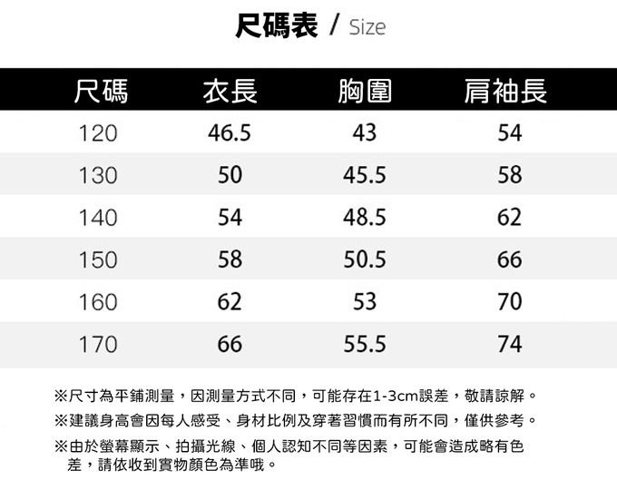 120cm、130cm、140cm、150cm、160cm、170cm