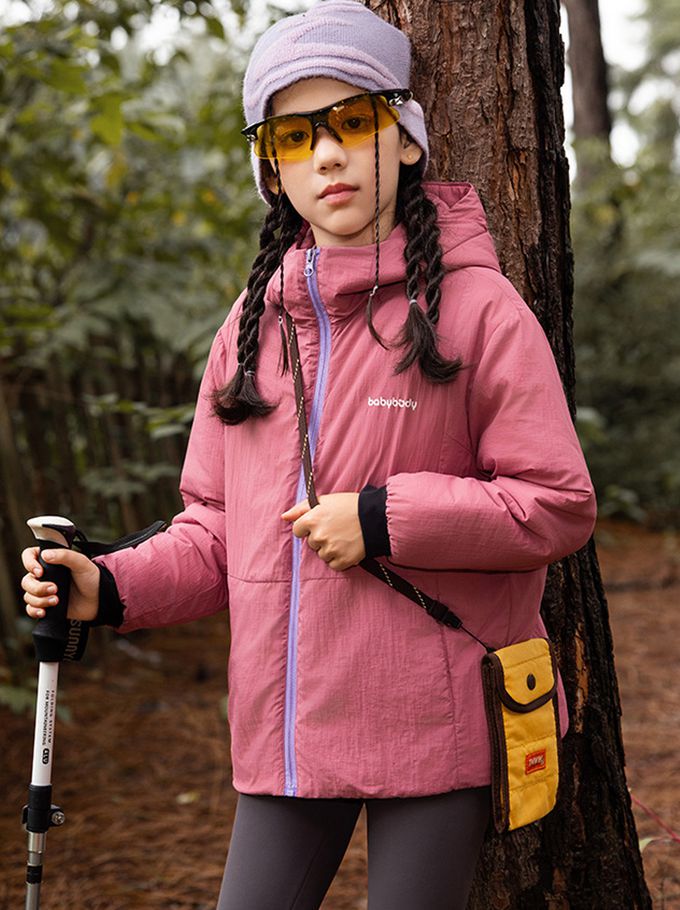 4級防水杜邦SORONA鋪棉連帽外套-撞色拉鍊-莓紅色