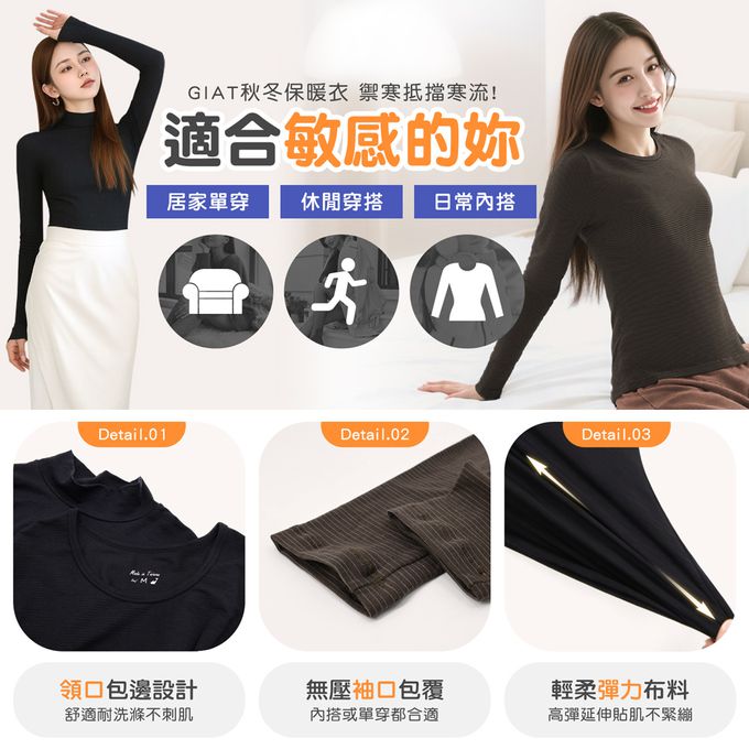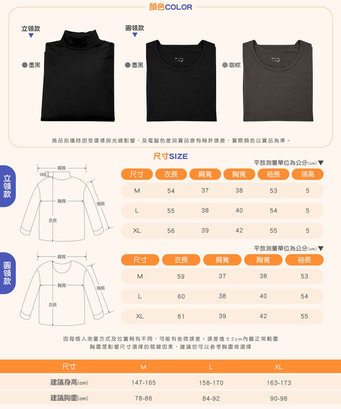 女款膠原蛋白蓄熱保暖衣-立領-墨黑