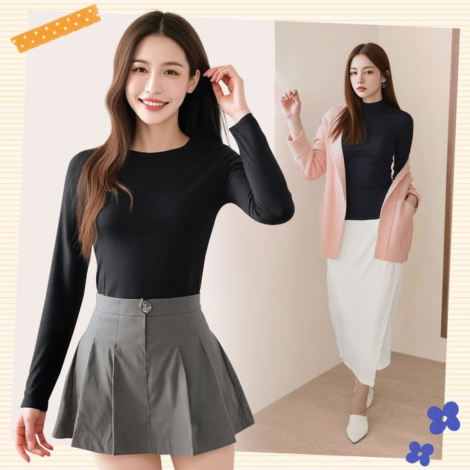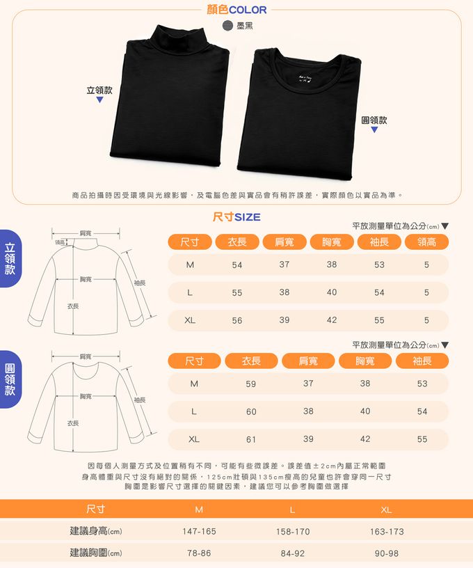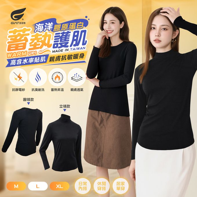 女款膠原蛋白蓄熱保暖衣-立領-墨黑