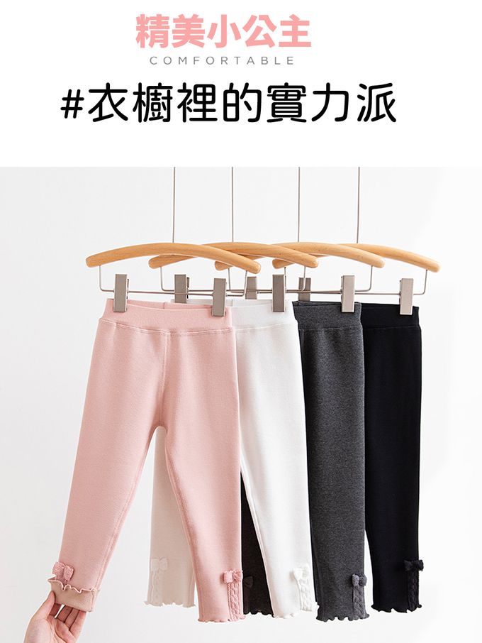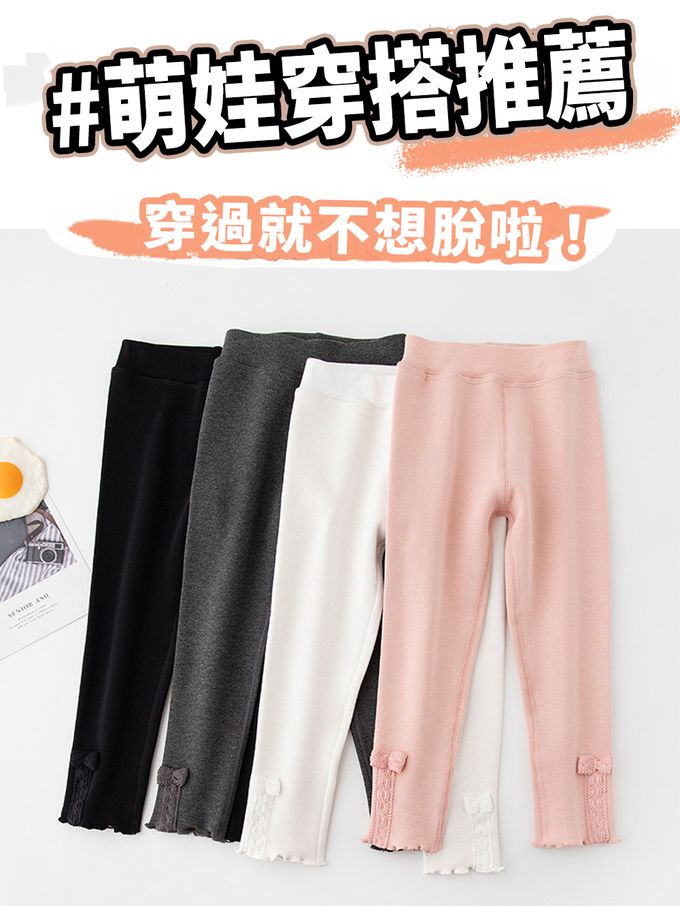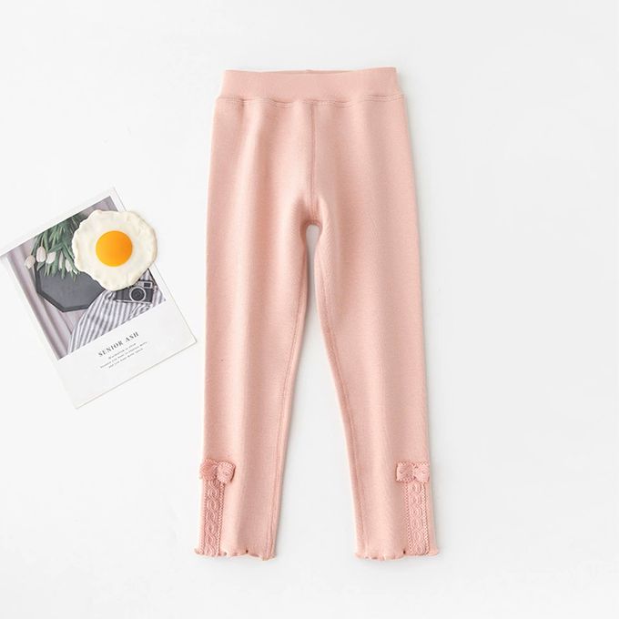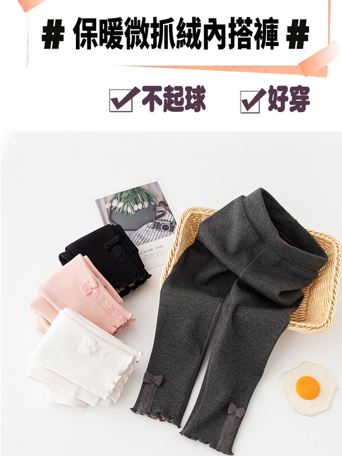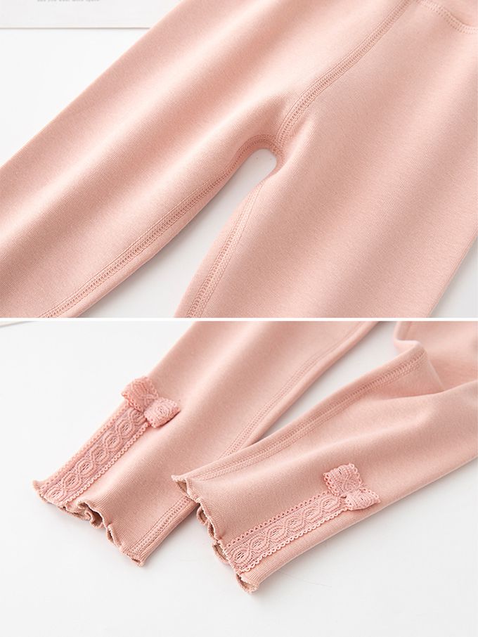 保暖微抓絨內搭褲-蕾絲蝴蝶結-粉色
