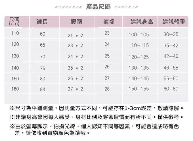 110cm、120cm、130cm、140cm、150cm、160cm