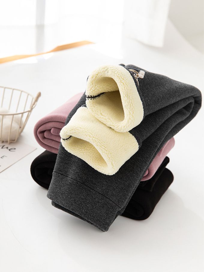 加絨加厚暖暖內搭褲-可愛女孩-粉紫