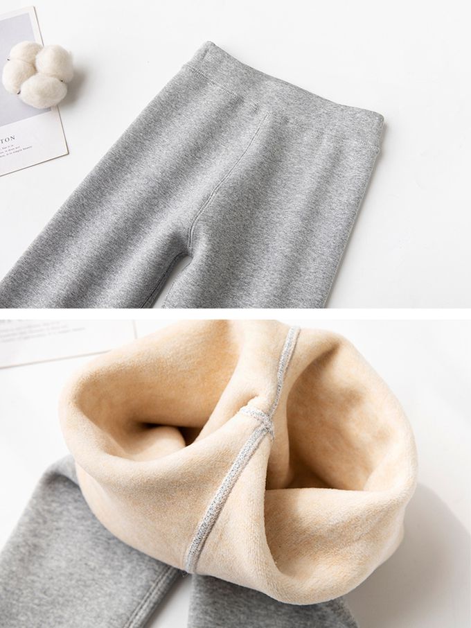 FANMOU - 加絨腰鬆緊保暖內搭褲-可愛熊熊-深灰色
