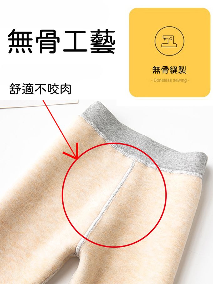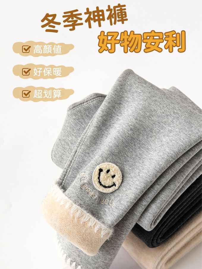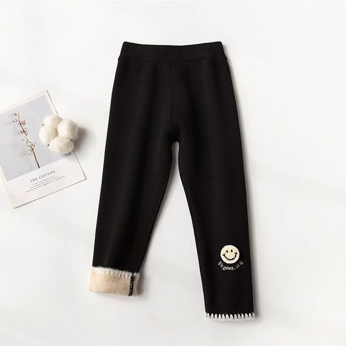 加絨腰鬆緊保暖內搭褲-毛線笑臉-黑色