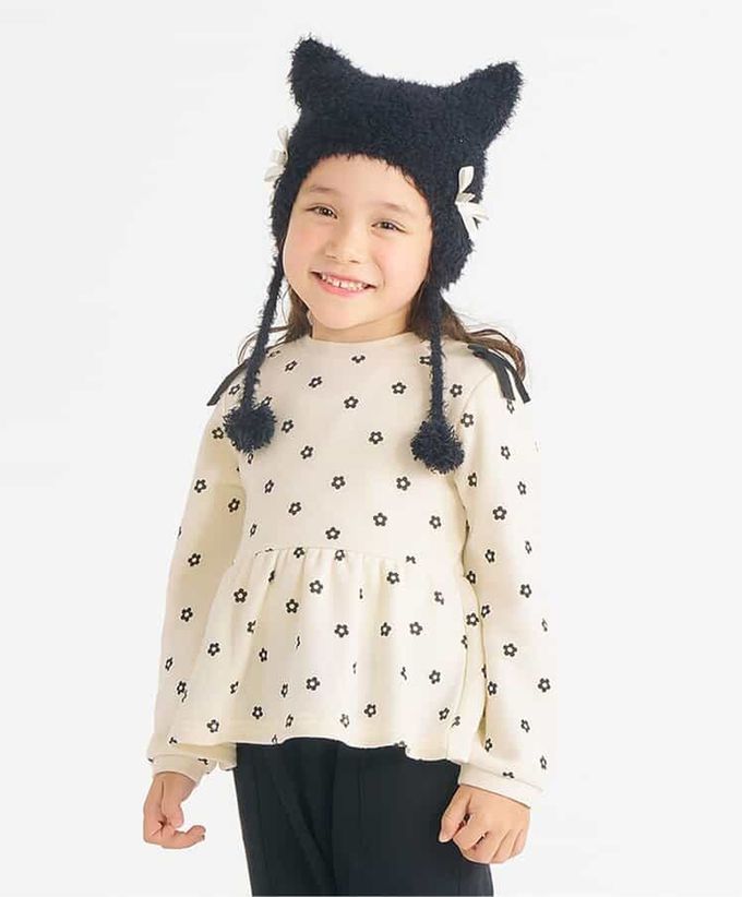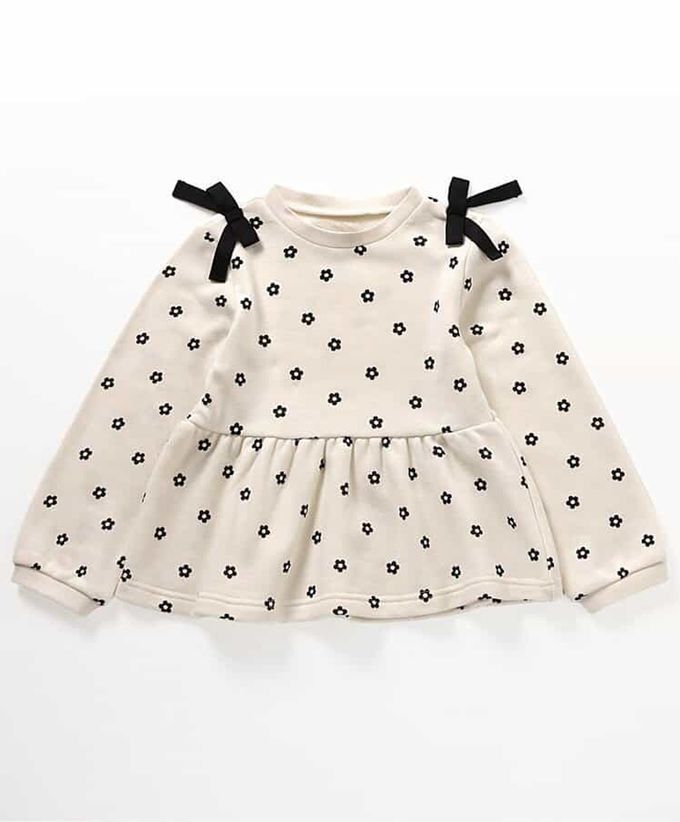 日本 apres les cours - 雙肩絲帶可愛長袖上衣-小花-白