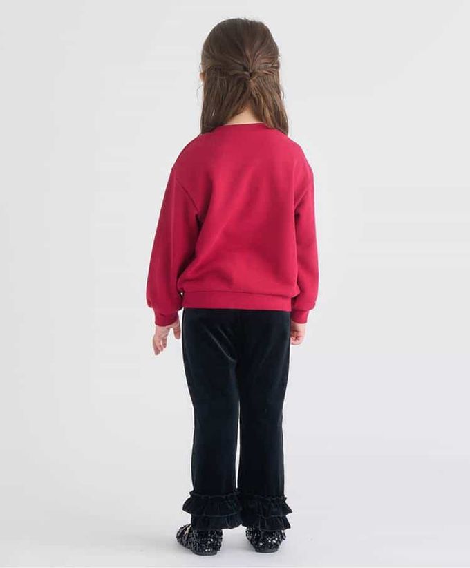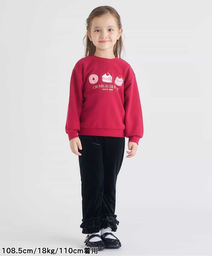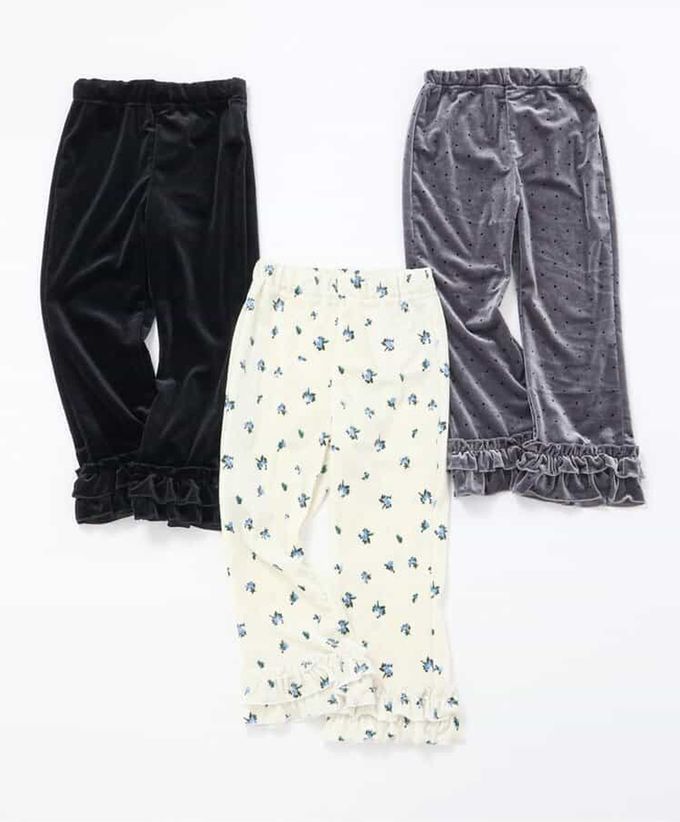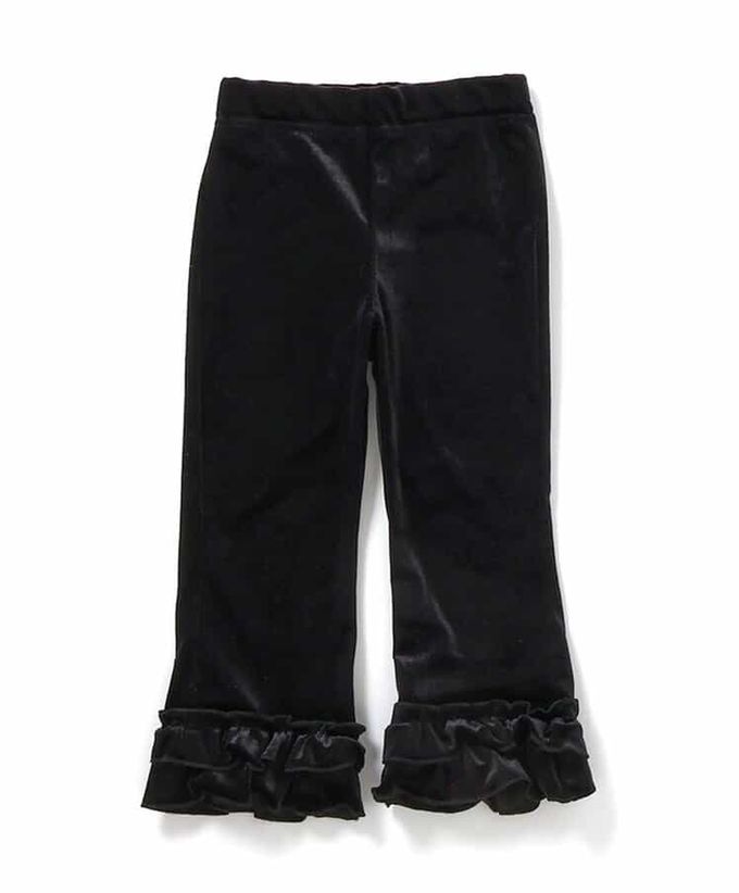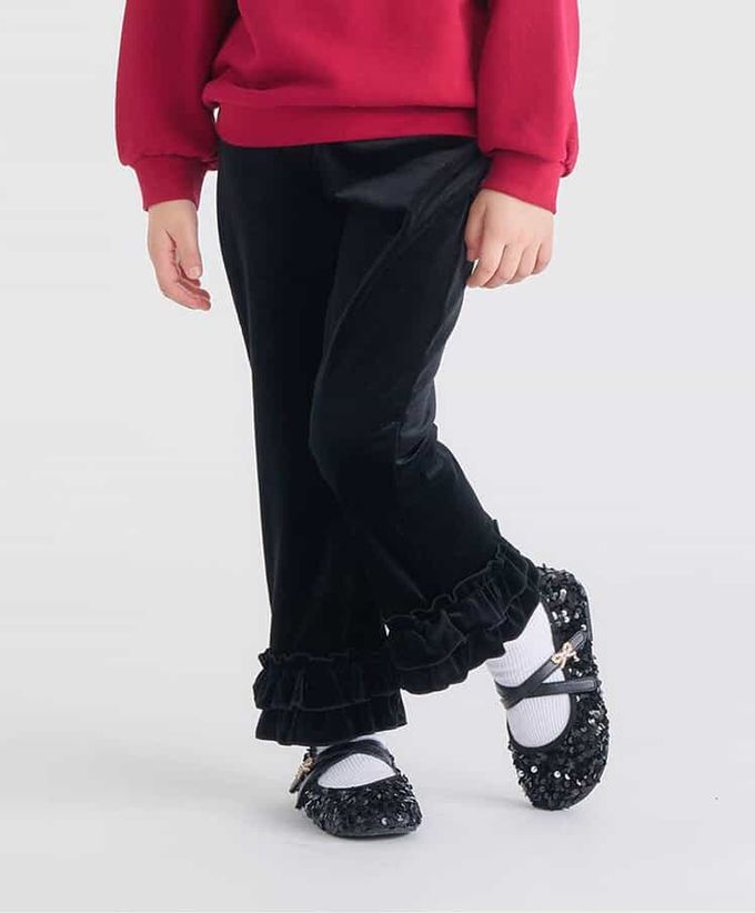 日本 apres les cours - 華麗感絨面雙層荷葉長褲-素面-黑