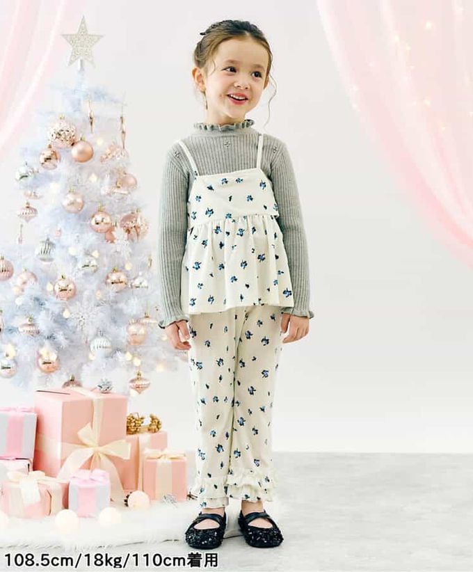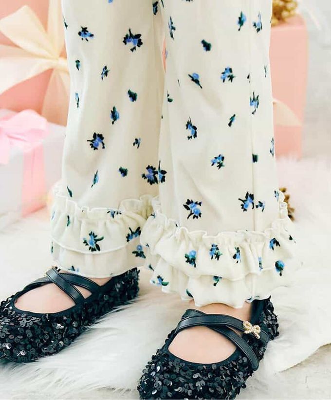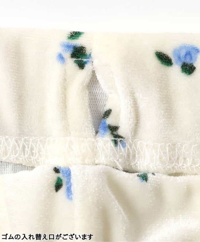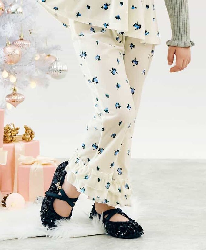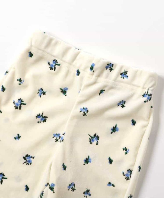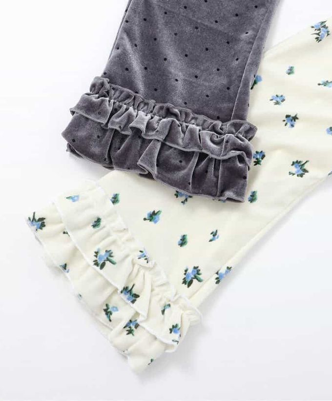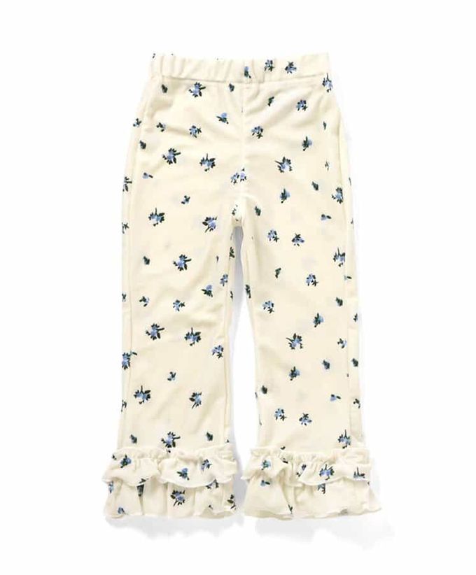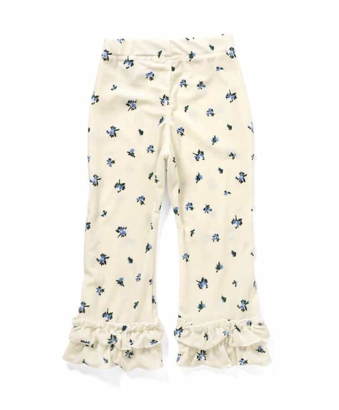 日本 apres les cours - 華麗感絨面雙層荷葉長褲-小花-白