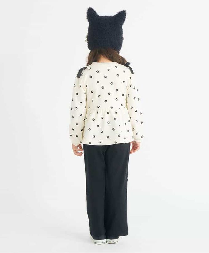 日本 apres les cours - 蝴蝶結刺繡裏起毛前開叉長褲-黑