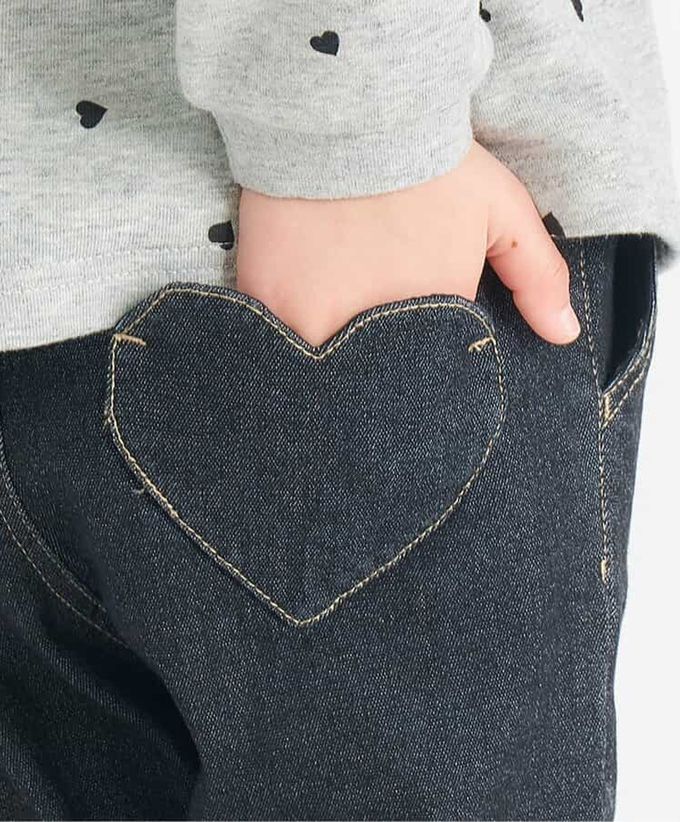 日本 apres les cours - 愛心口袋裏起毛保暖長褲-黑