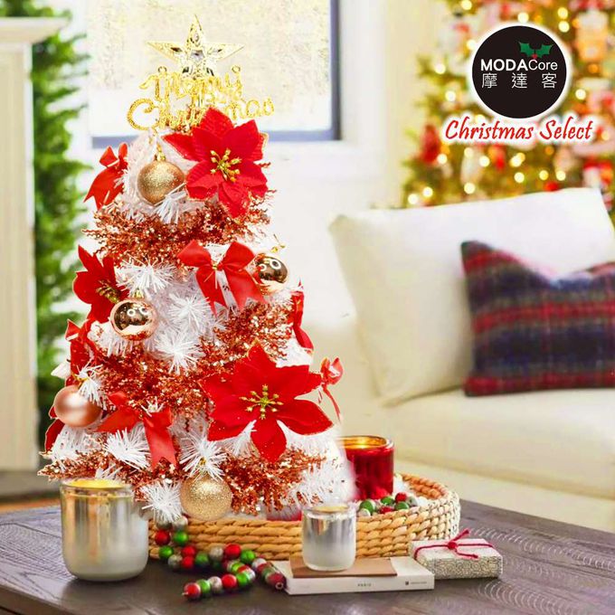 台灣製2尺(60cm)精緻白色聖誕樹+熱情西班牙聖誕花紅金系飾品組/不含燈/本島免運費MIT歐美外銷人氣款