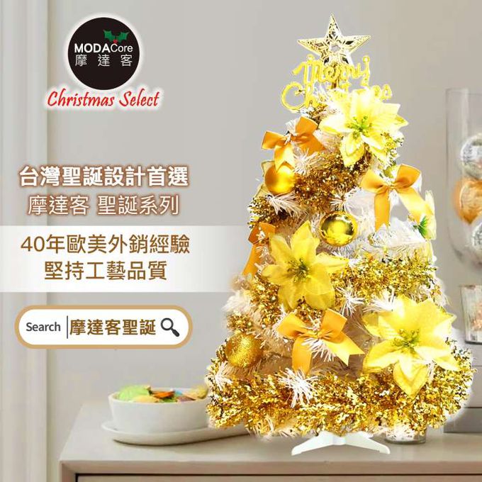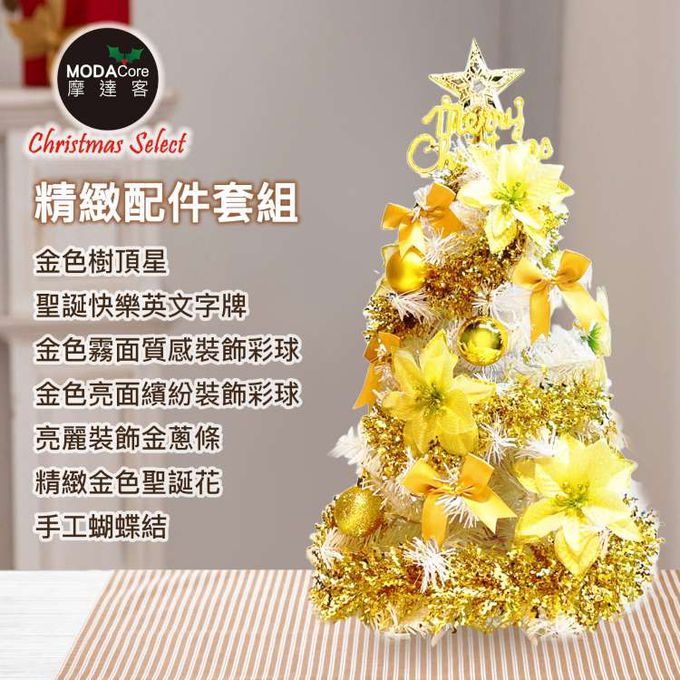 台灣製2尺(60cm)精緻白色聖誕樹+富貴雙金聖誕花系飾品組/不含燈/本島免運費MIT歐美外銷人氣款
