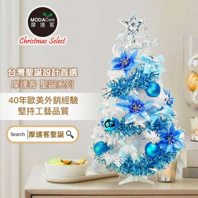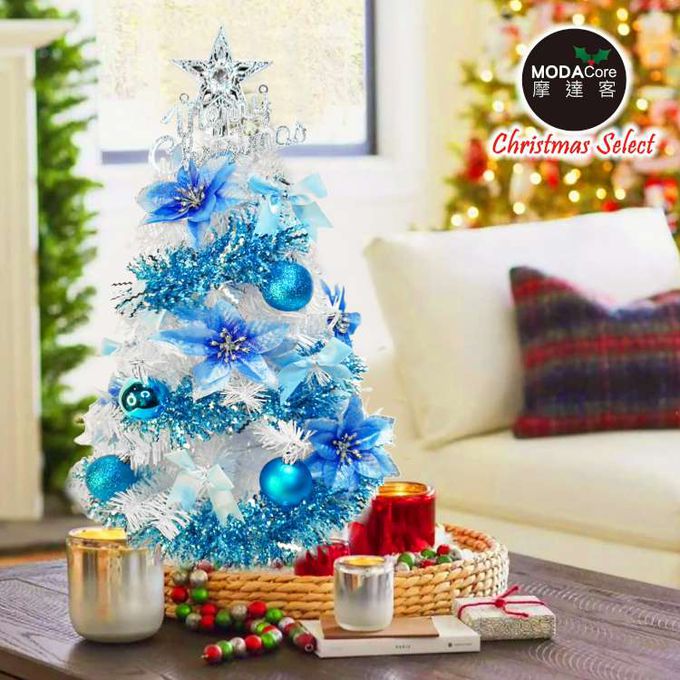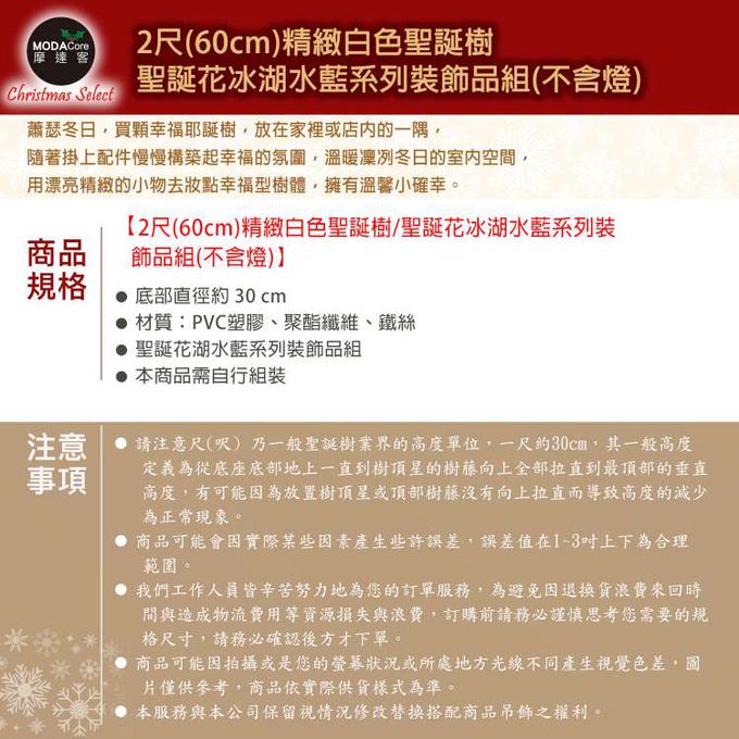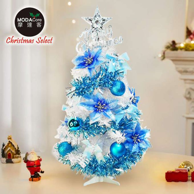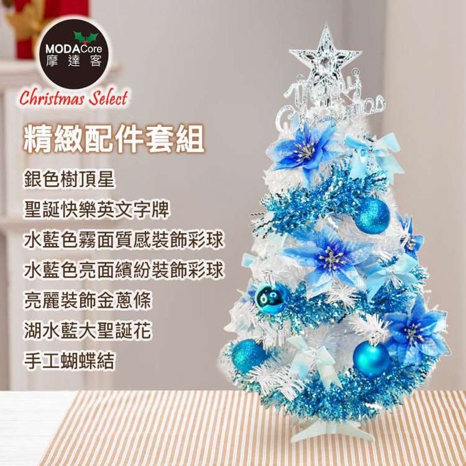 台灣製2尺(60cm)精緻白色聖誕樹+聖誕花冰湖水藍系飾品組/不含燈/本島免運費MIT歐美外銷人氣款