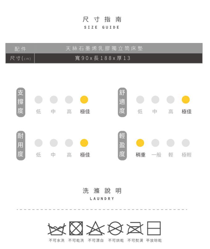 成分:品名 天絲石墨烯乳膠獨立筒床墊 尺寸 105x188x13cm