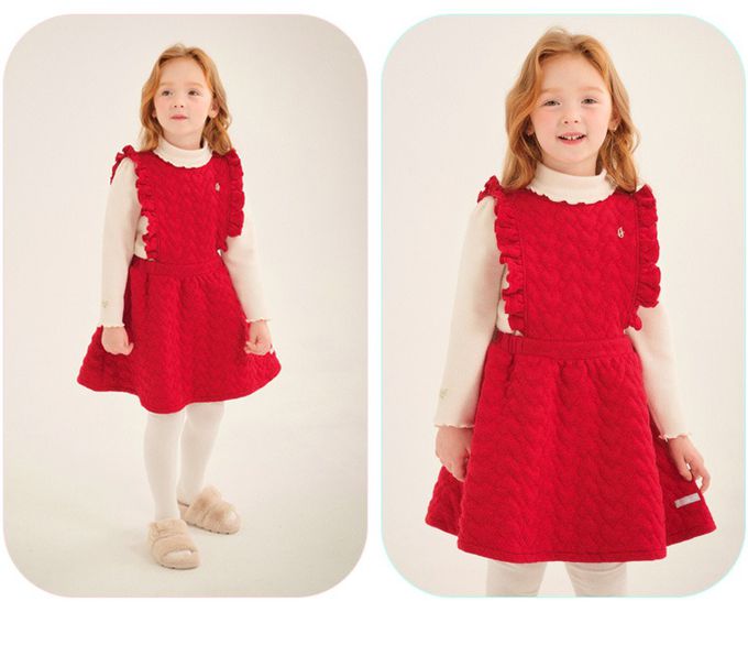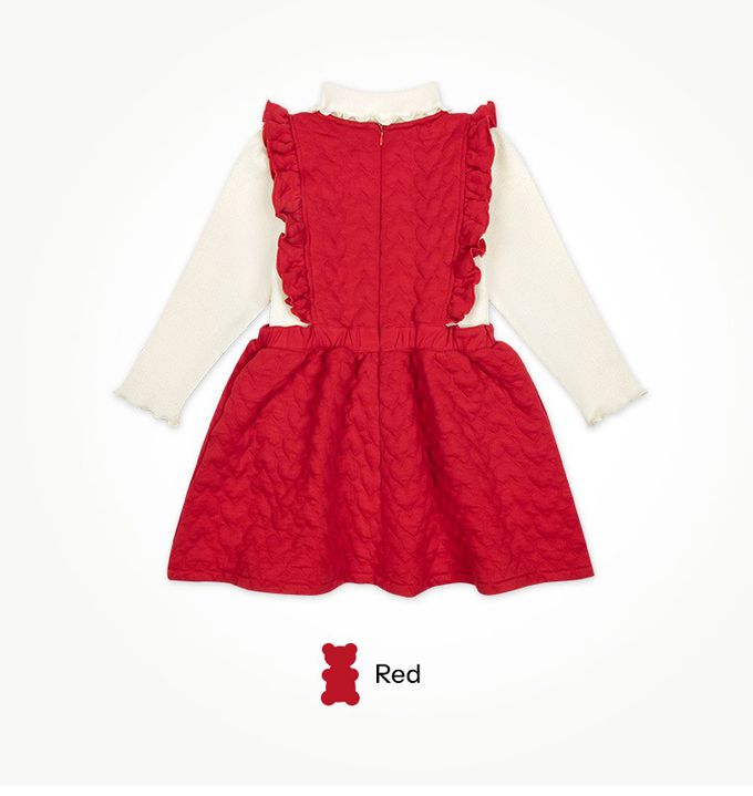 韓國 Jelispoon - (含上衣)愛心絎縫背心洋裝-紅