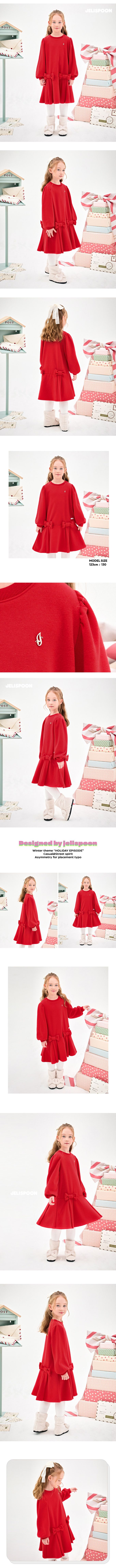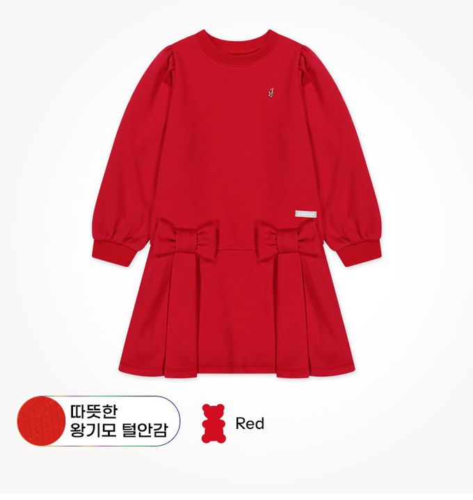 韓國 Jelispoon - 紅通通大蝴蝶結裝飾內刷毛蓬袖連身洋裝