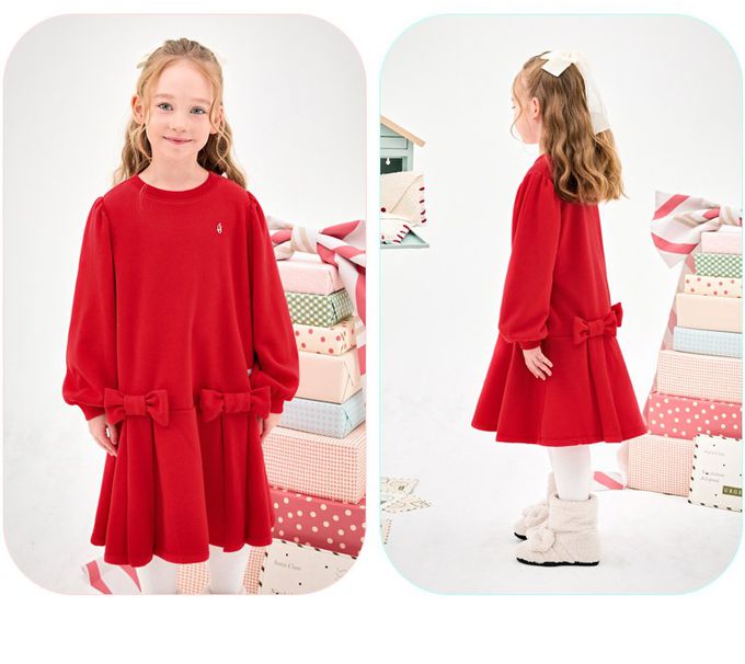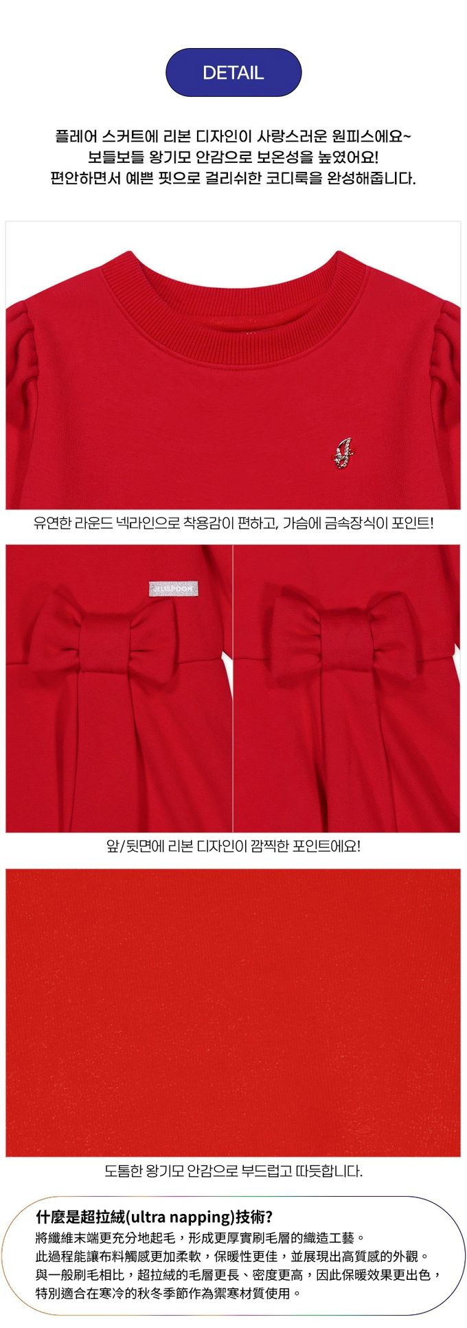 • 品名:紅通通大蝴蝶結裝飾內刷毛蓬袖連身洋裝