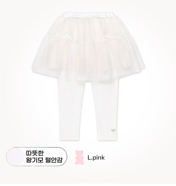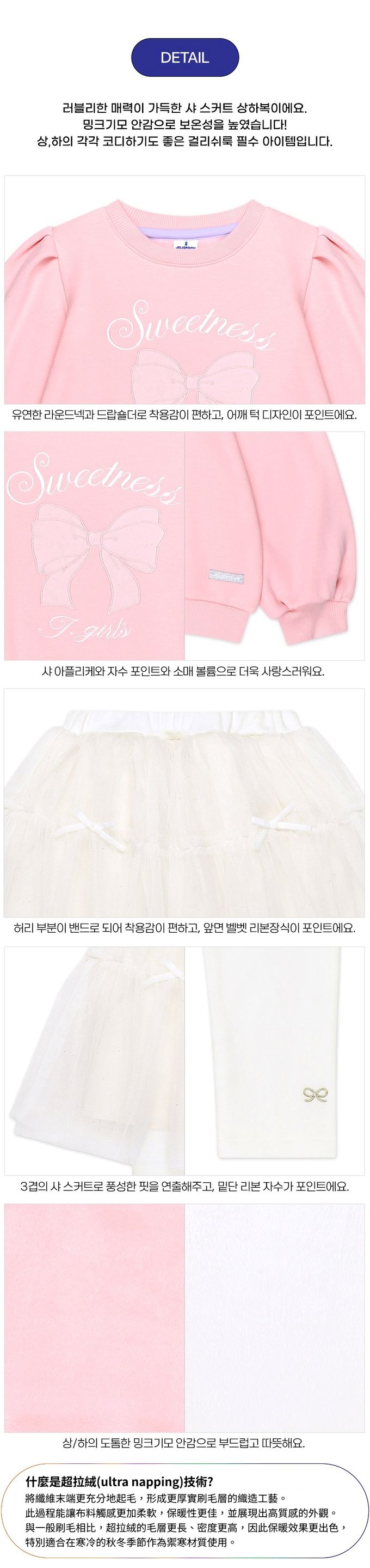 韓國 Jelispoon - 刺繡蝴蝶結內刷毛蓬袖上衣X紗裙內搭褲套裝-粉X白
