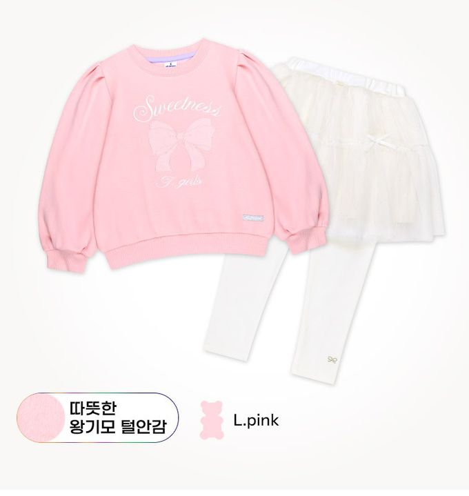 • 品名:刺繡蝴蝶結內刷毛蓬袖上衣X紗裙內搭褲套裝