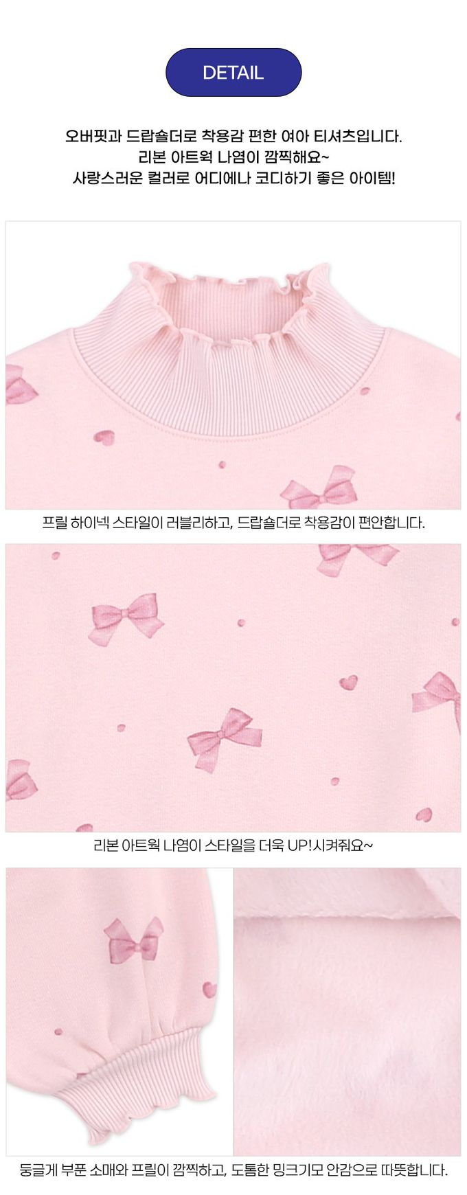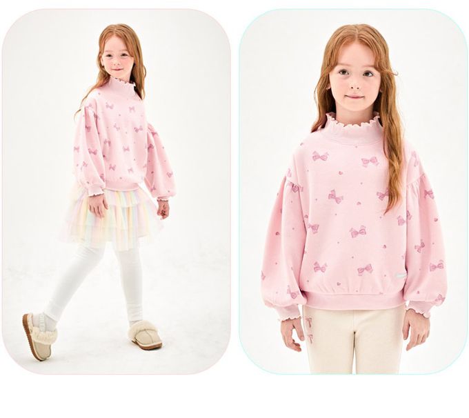 韓國 Jelispoon - 小蝴蝶結印內刷毛高領長袖大學T-粉