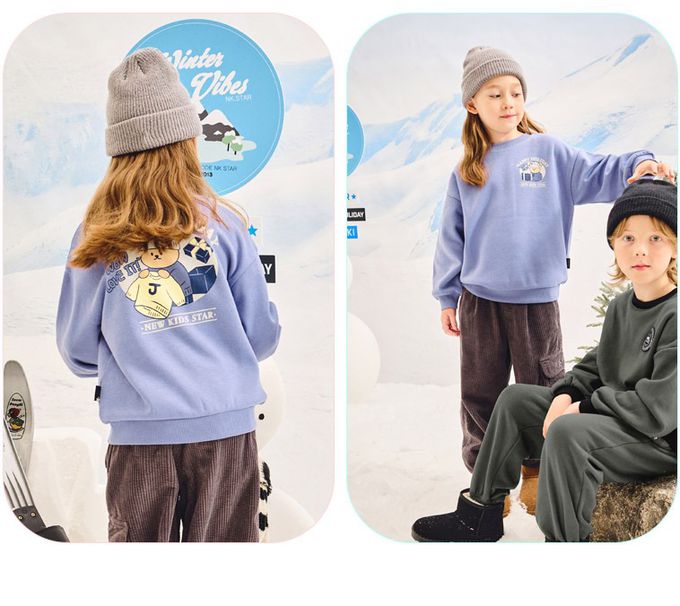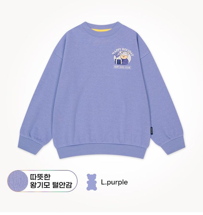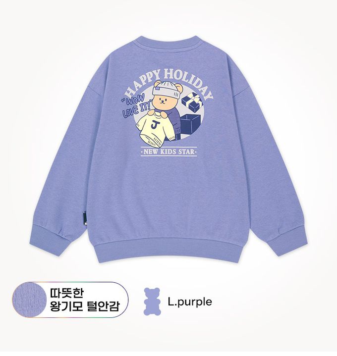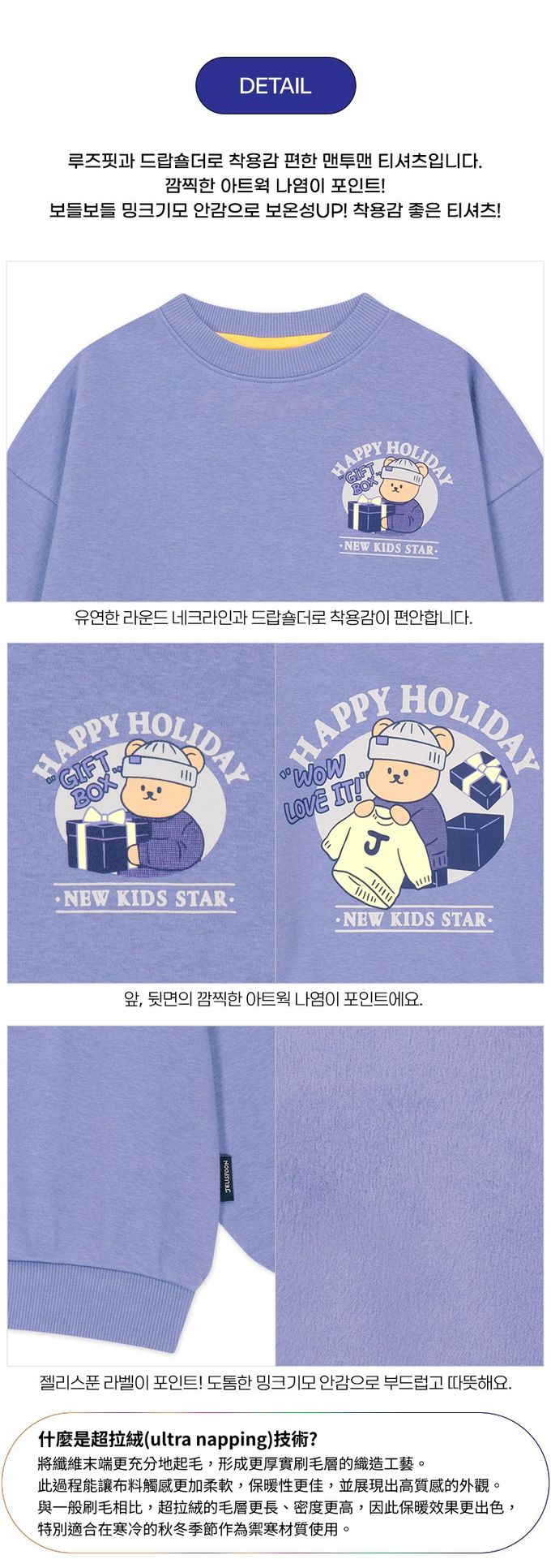韓國 Jelispoon - 禮物盒熊熊圖案內刷毛長袖大學T-藍紫
