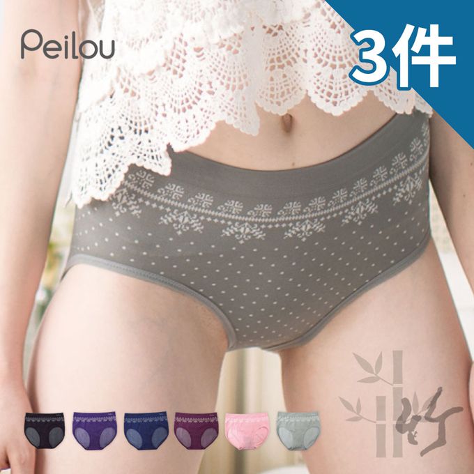 機能竹炭抗菌無縫中腰三角褲-圖騰(3入組) (3件組(隨機色出貨))-Free Size(適合M~XL)