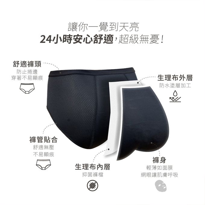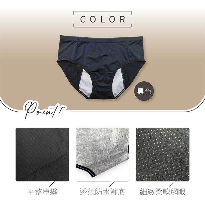 品名:網眼透氣防滲生理褲(2入組)-黑