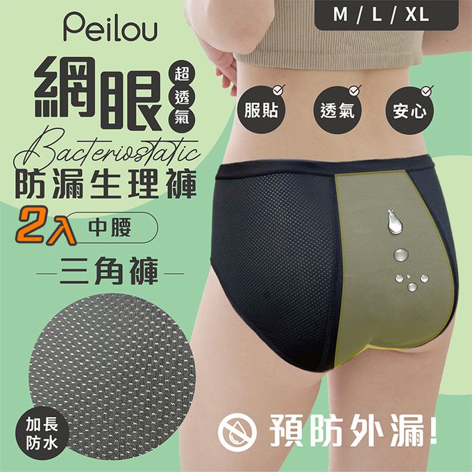網眼透氣防滲生理褲(2入組)-黑 (2件組)-M/L/XL