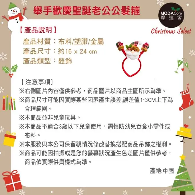 品名:耶誕派對-舉手歡慶聖誕老公公髮箍