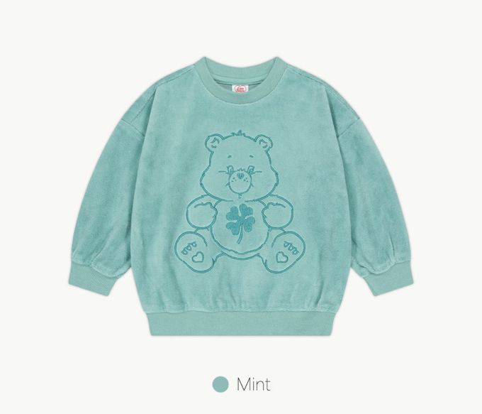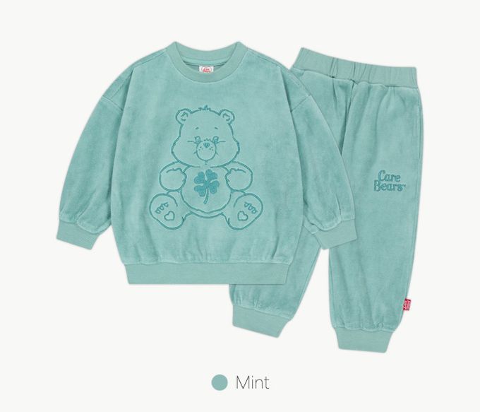 韓國 Care Bears - 聯名款刺繡熊熊柔軟天鵝絨長袖套裝-湖水綠