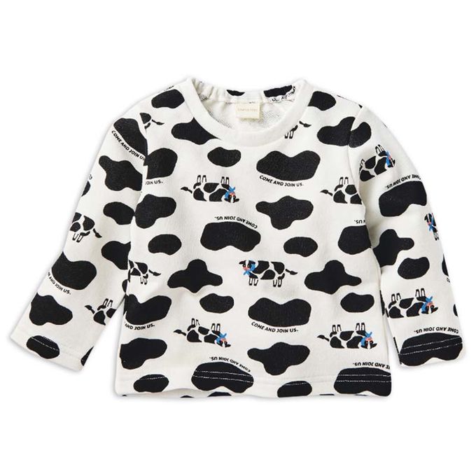 akachan honpo - 長袖休閒上衣-滿版圖案 起絨-白色