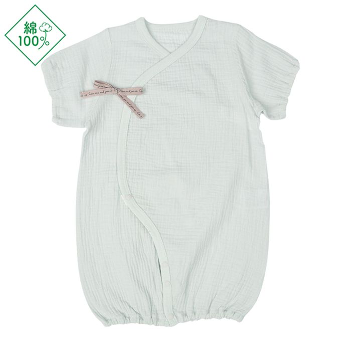 akachan honpo - 短袖連身衣 穆斯林棉紗-淺藍色 (50~70cm)