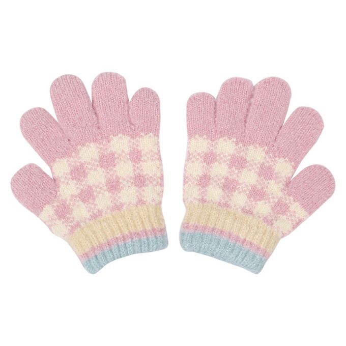 5指手套-格紋-粉紅色