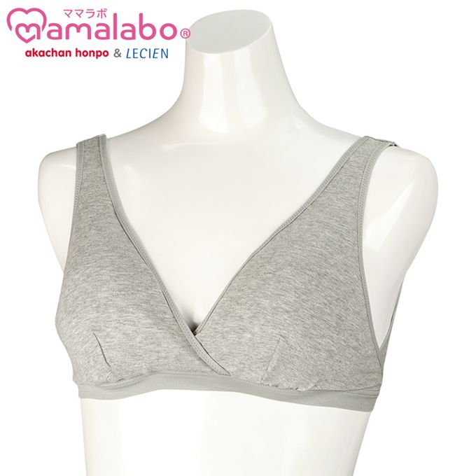 akachan honpo - 輕鬆哺乳半截式內衣-鉤扣款 橫紋-灰色