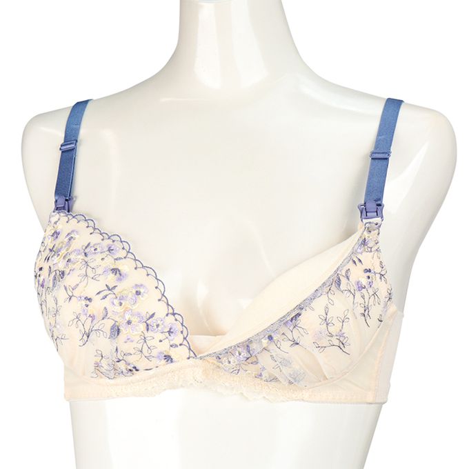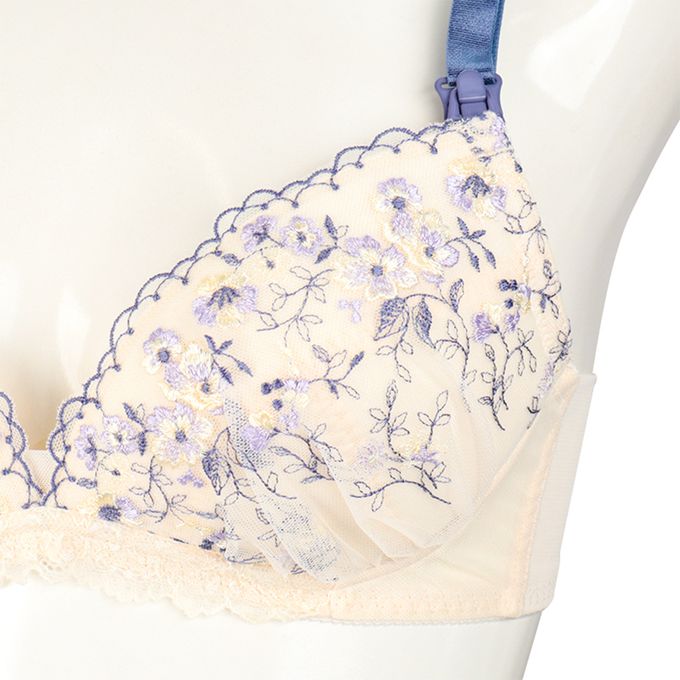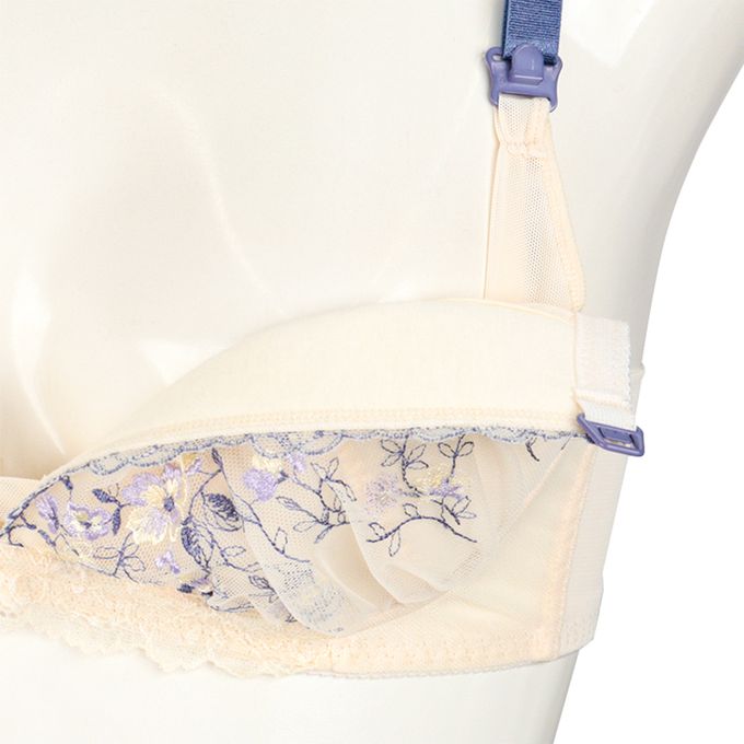 美型無鋼圈胸罩-小花 有哺乳功能-象牙白色