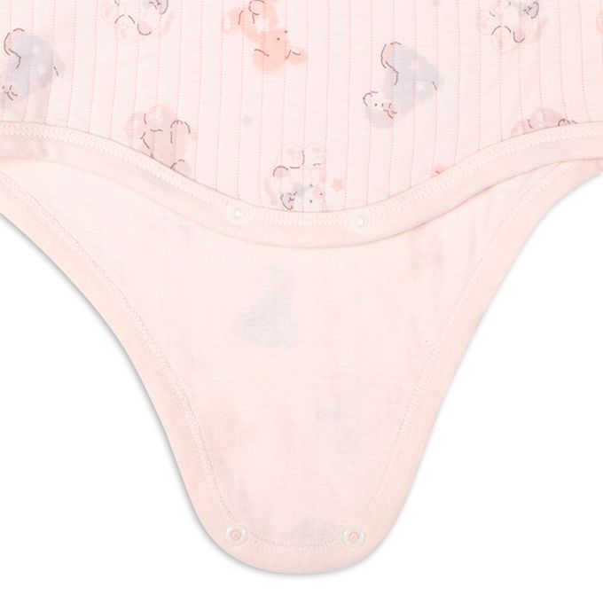 領口有方便穿脫的鬆緊帶,有加褲檔的設計讓臀部周圍寬鬆