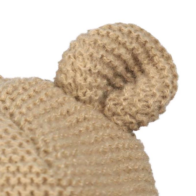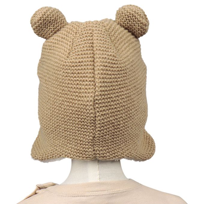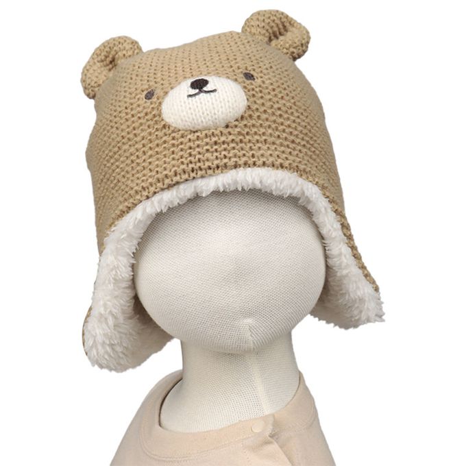 冬季針織帽 內裡刷毛-動物-淺卡其色