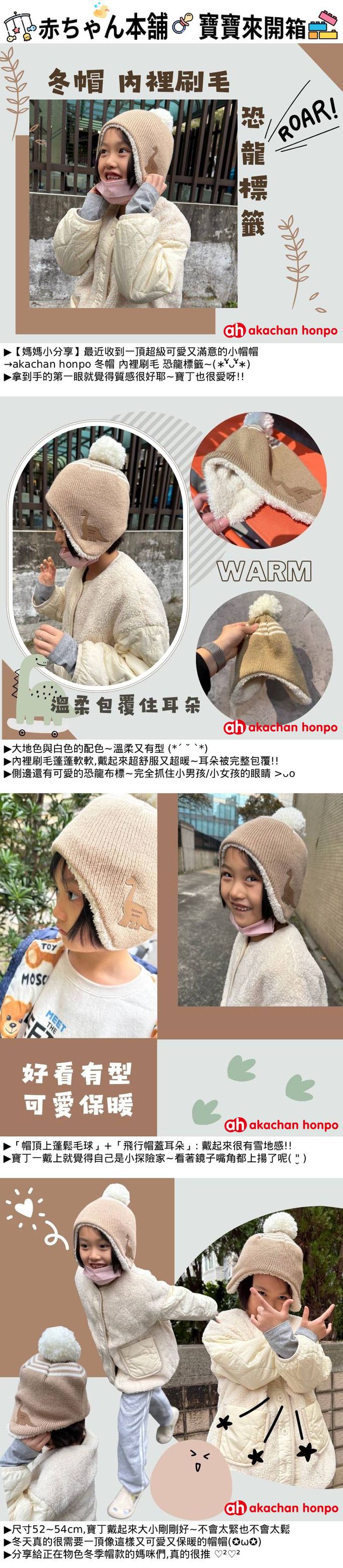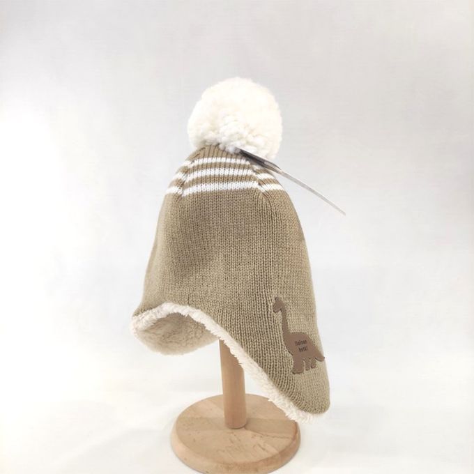 冬帽 內裡刷毛-恐龍標籤-淺卡其色