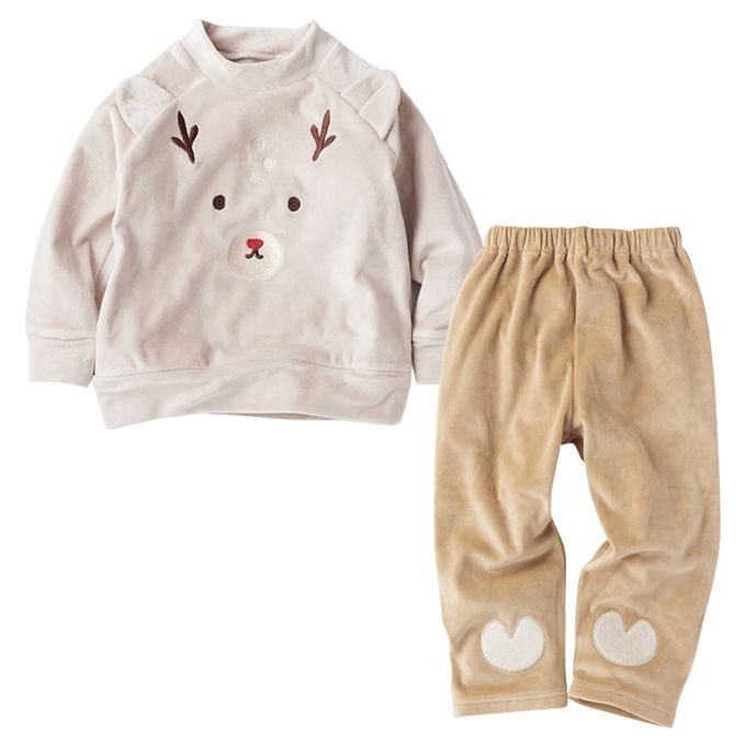 akachan honpo - 幫助睡眠長袖家居服-軟綿彈性-咖啡色