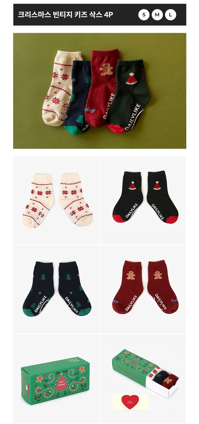韓國 Daily Like - 兒童襪子/中筒襪4入組-聖誕氛圍
