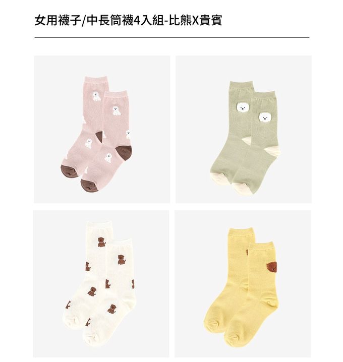 韓國 Daily Like - 女用襪子/中長筒襪4入組-比熊X貴賓 (220~250mm)