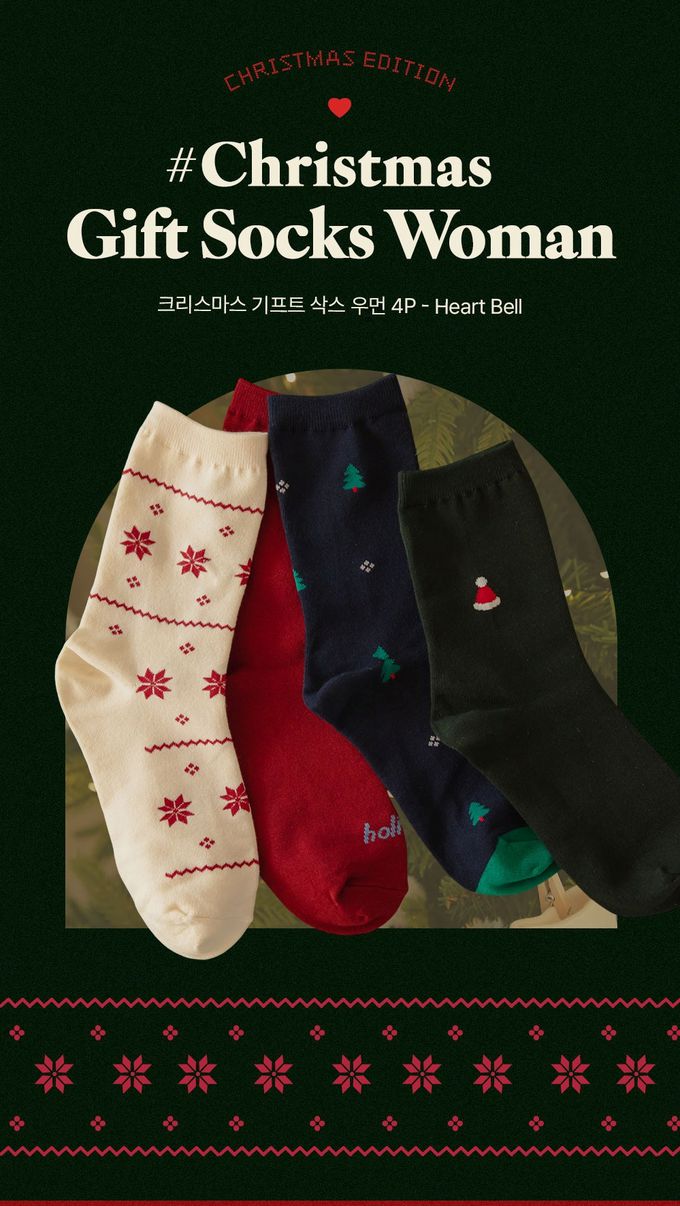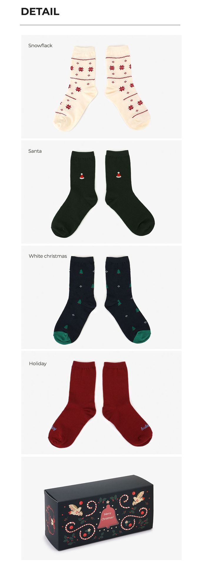 韓國 Daily Like - 女用襪子/中長筒襪4入組-聖誕氛圍 (220~250mm)