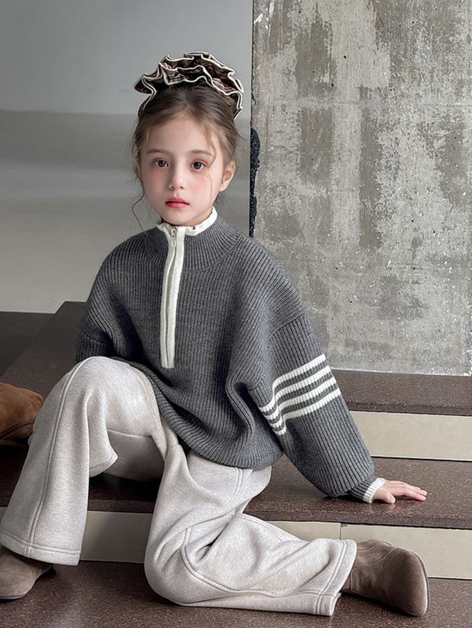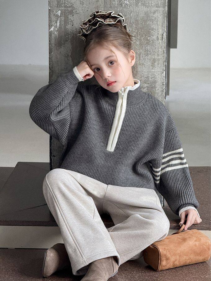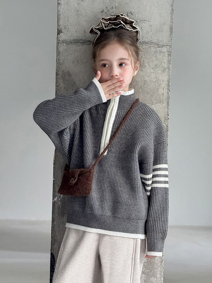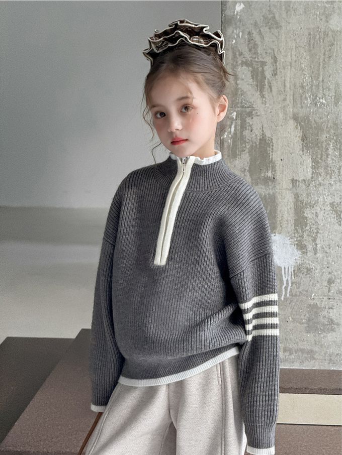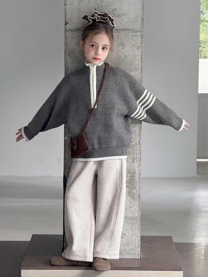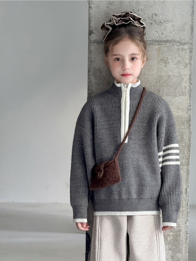 輕盈暖絨立領刺繡毛衣-小狗-灰色