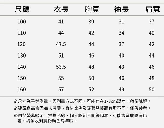 100cm、110cm、120cm、130cm、140cm、150cm、160cm