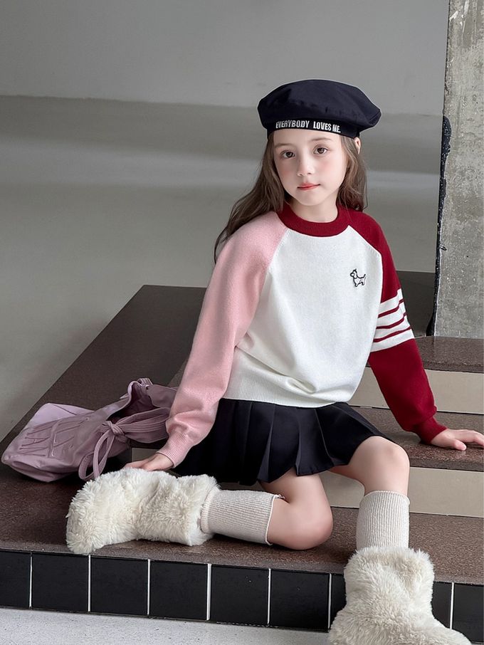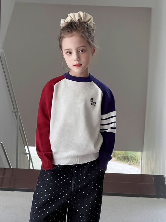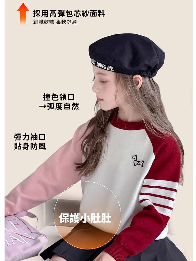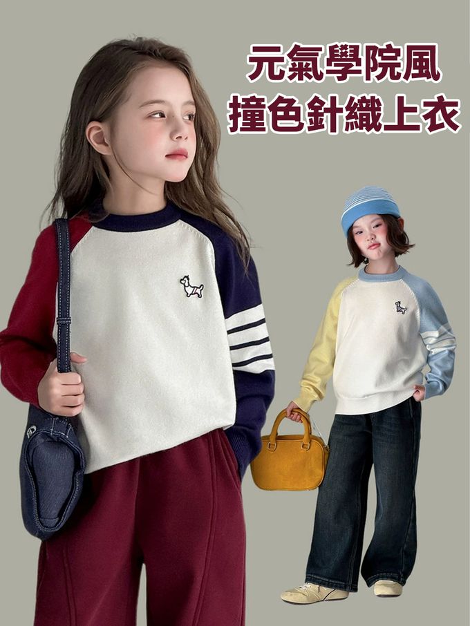 品名:元氣學院風撞色針織上衣