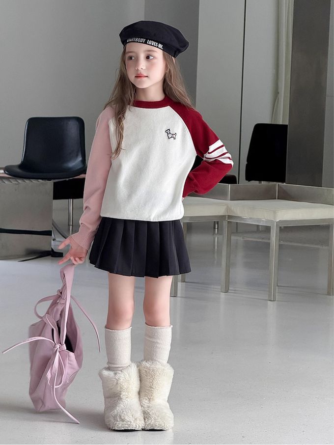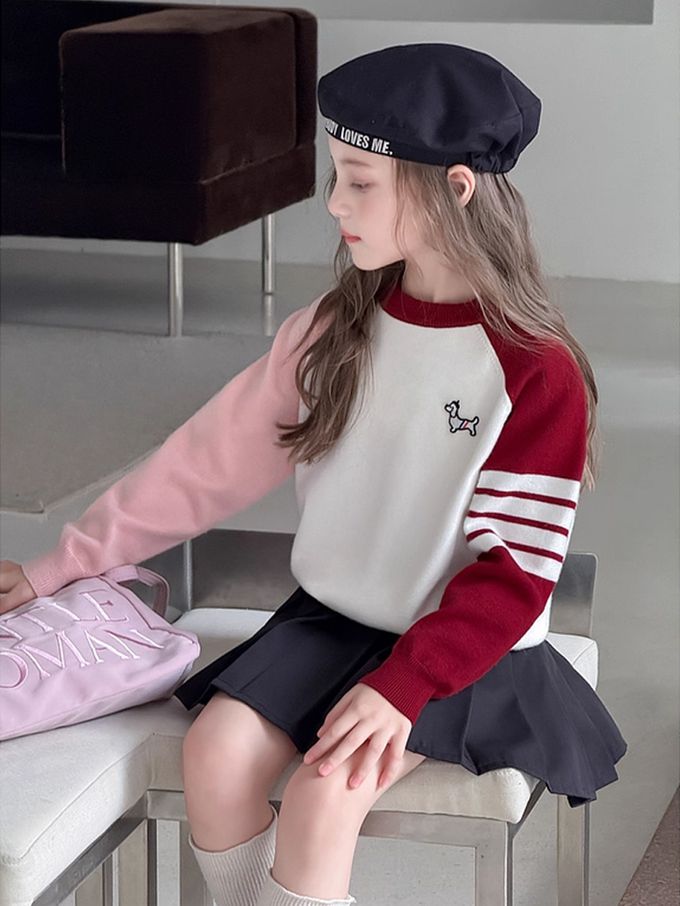 元氣學院風撞色針織上衣-紅色
