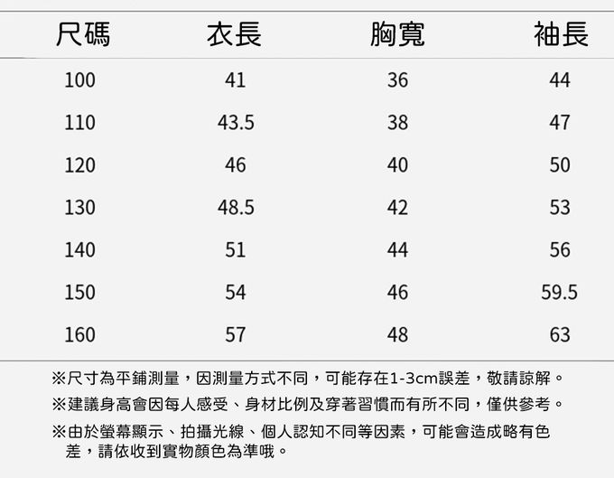 100cm、110cm、120cm、130cm、140cm、150cm、160cm