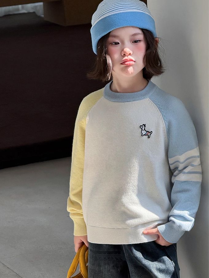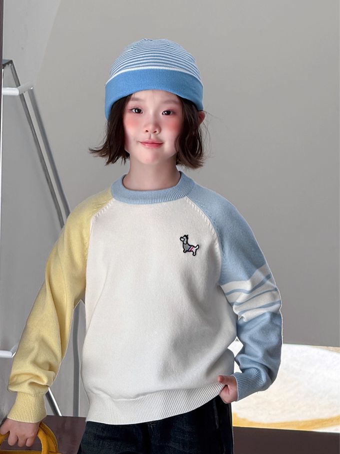 品名:元氣學院風撞色針織上衣