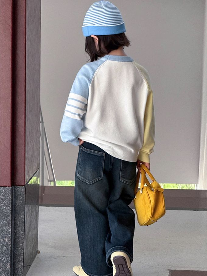 元氣學院風撞色針織上衣-藍色