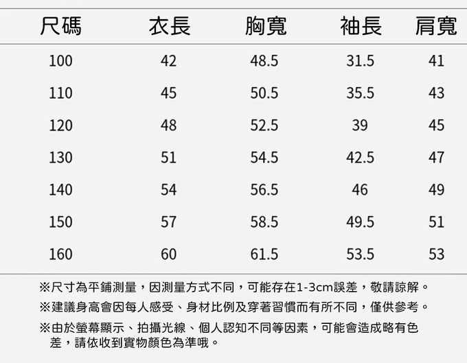 100cm、110cm、120cm、130cm、140cm、150cm、160cm